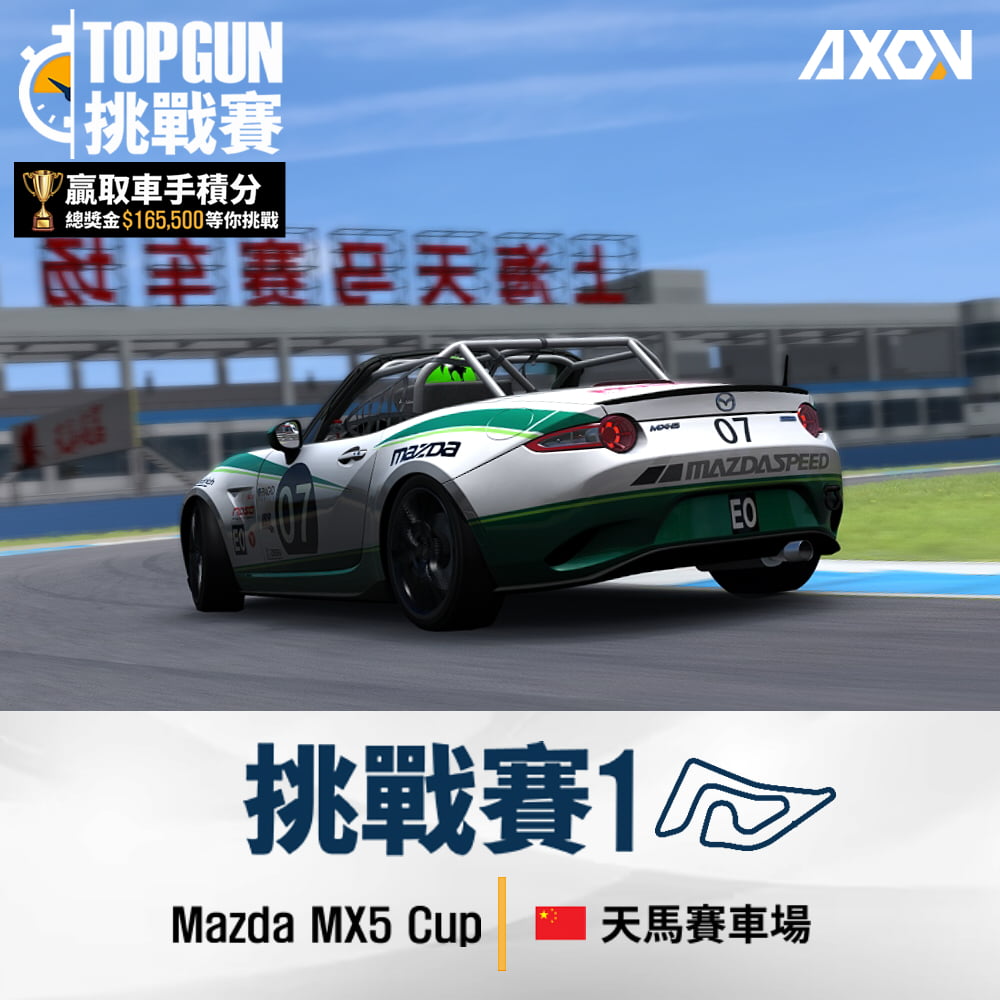 天馬賽車場位於中國上海,全長2.063公里,是當地有名的國際級賽車場之一。在這裡舉辦的大型賽事包含有WTCC、F3方程式賽車等,還有CSBK摩托車賽事在此比賽也非常有名。搭配的賽車是大家很熟悉的Mazda MX5 Cup,這台以豐富駕駛樂趣聞名的小賽車會帶來什麼火花呢!