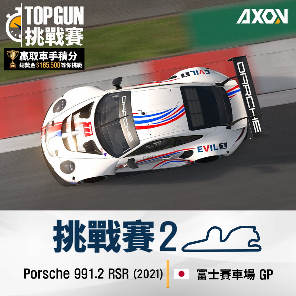 日本最著名的賽車場之一,擁有超過40年歷史,富士賽車場更曾經在1976年舉辦了日本歷史上第一場F1大獎賽。本賽道在高速灣、低速彎、減速彎等各種彎型樣樣都有,最後的幾個大彎道帶有一點上坡,更是吃重車手的入彎點和開油技術,搭配MR配置的911 RSR GTE級別賽車,絕對可以考驗你的技術!