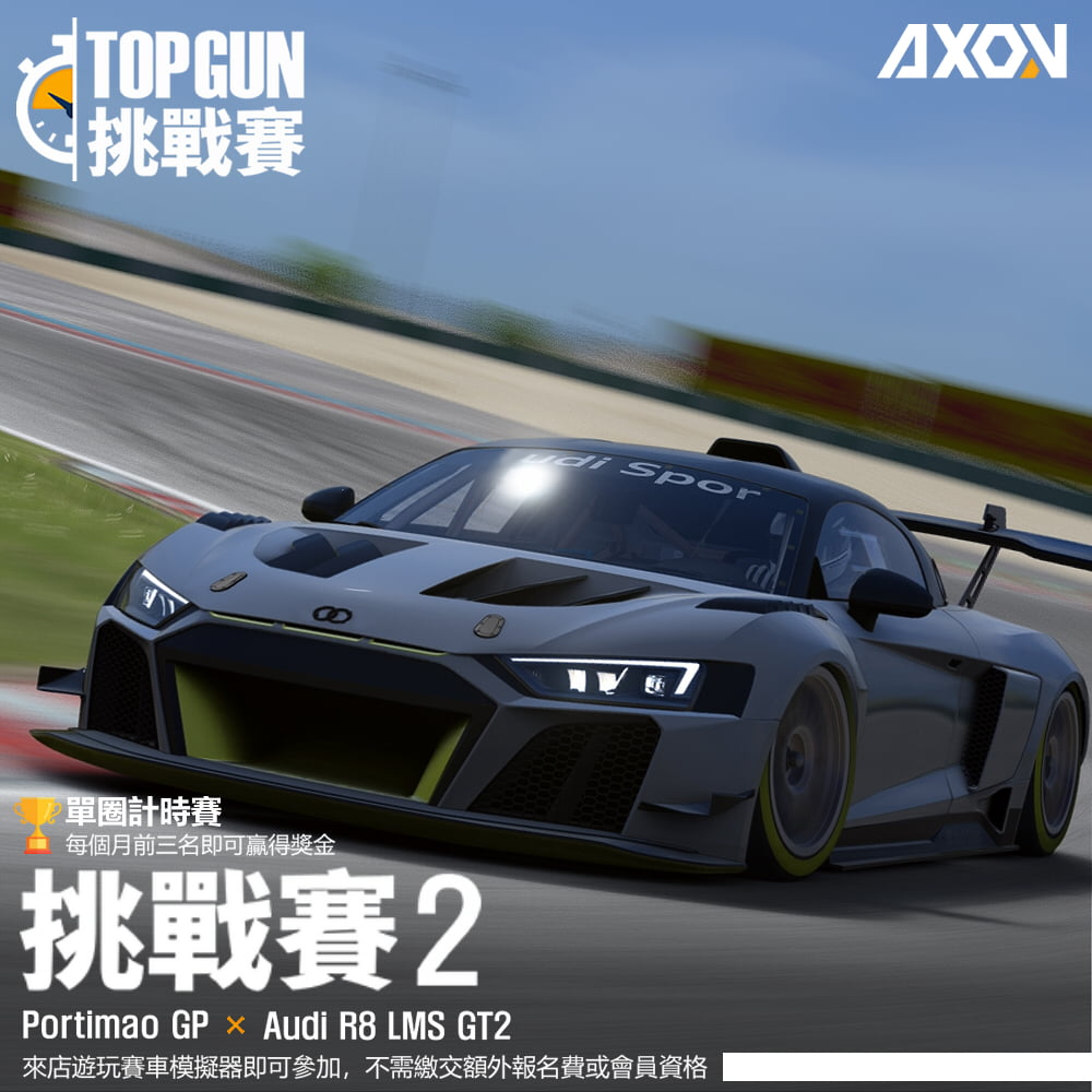 Portimao(Algrave)GP賽道,這條賽道以高度變化而聞名,需要double apex的大彎道和低速彎道也都沒有缺席,對於車輛重心平衡和路線的掌握都非常值得專研。搭配的是GT2級別的R8 LMS賽車,會比GT3還要再暴力一點~