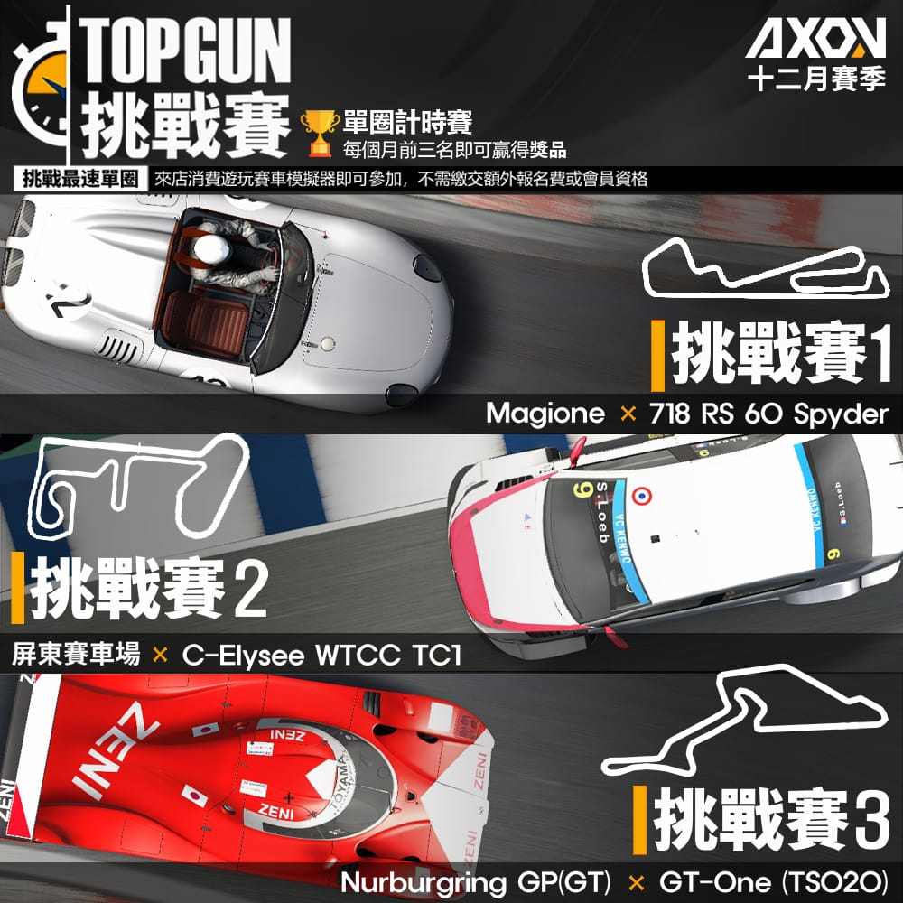 最後一個挑戰賽是在紐柏林南賽道,國際上最知名的大型賽事都在這裡舉辦過。這條賽道的連續地形坡度變化搭配連續彎道與重煞區,整體的技術難度其實也不亞於北賽道。搭配的賽車是在90年末GT1、GTP交接時期活躍的TS020,這輛日本的傳奇賽車在當年差點拿下利曼大賽的總冠軍。而它的性能在這條賽道也得以發揮,600匹馬力搭上足夠的下壓力在這條賽道上超級過癮~
